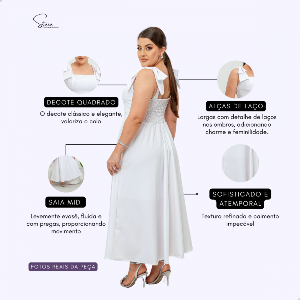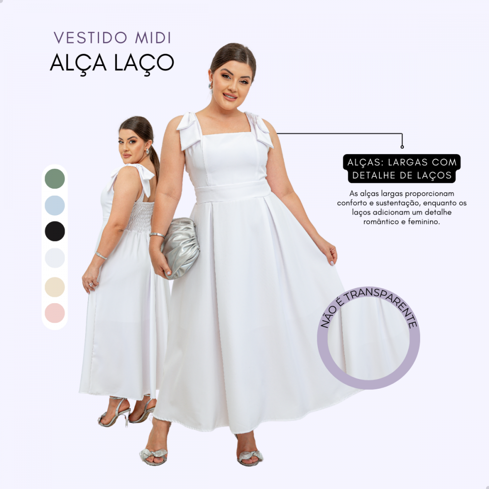 Possui laço elegante fixo no ombro