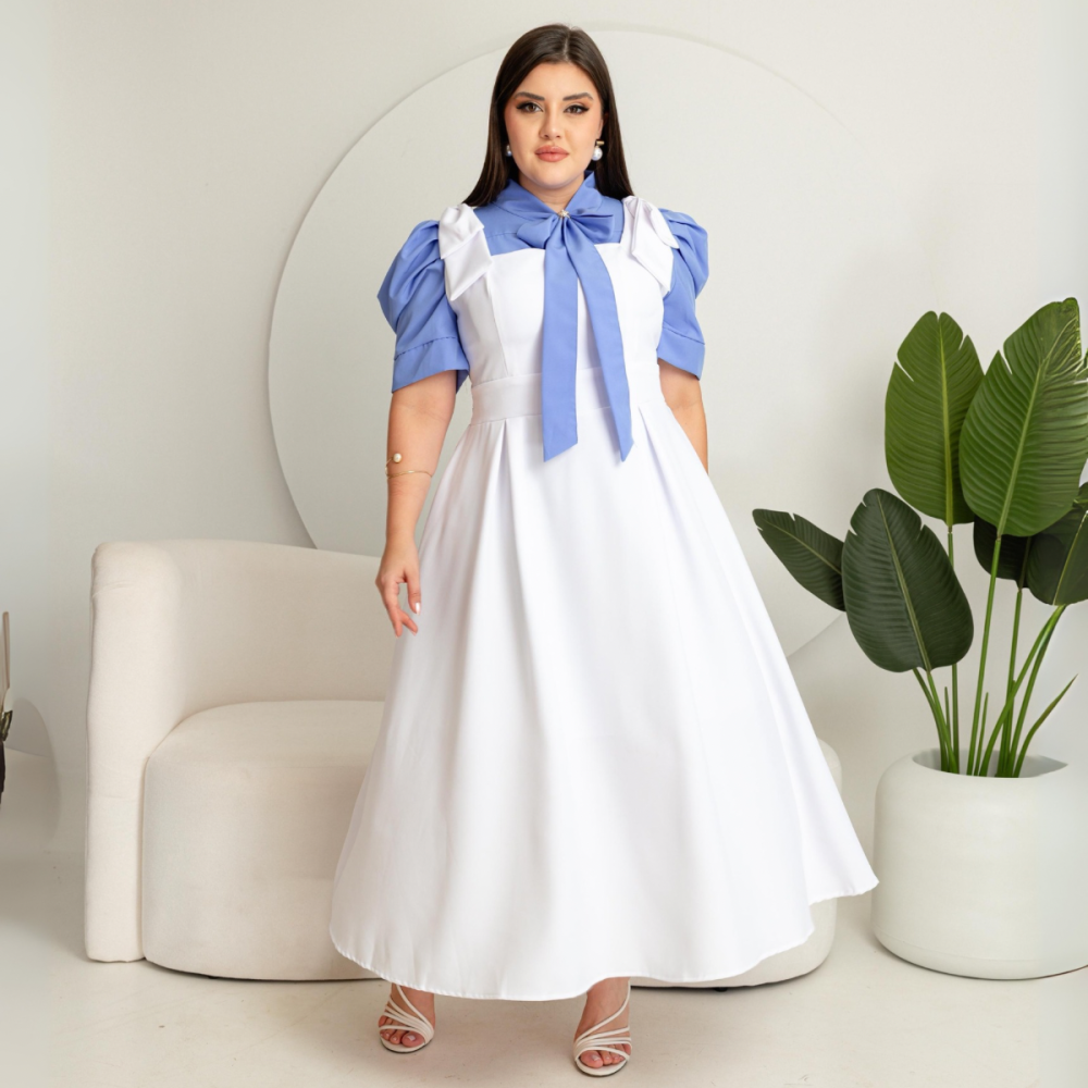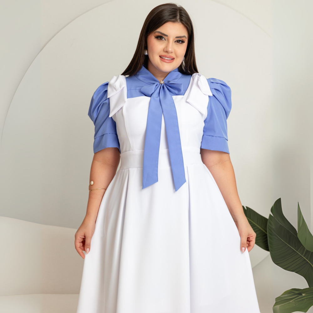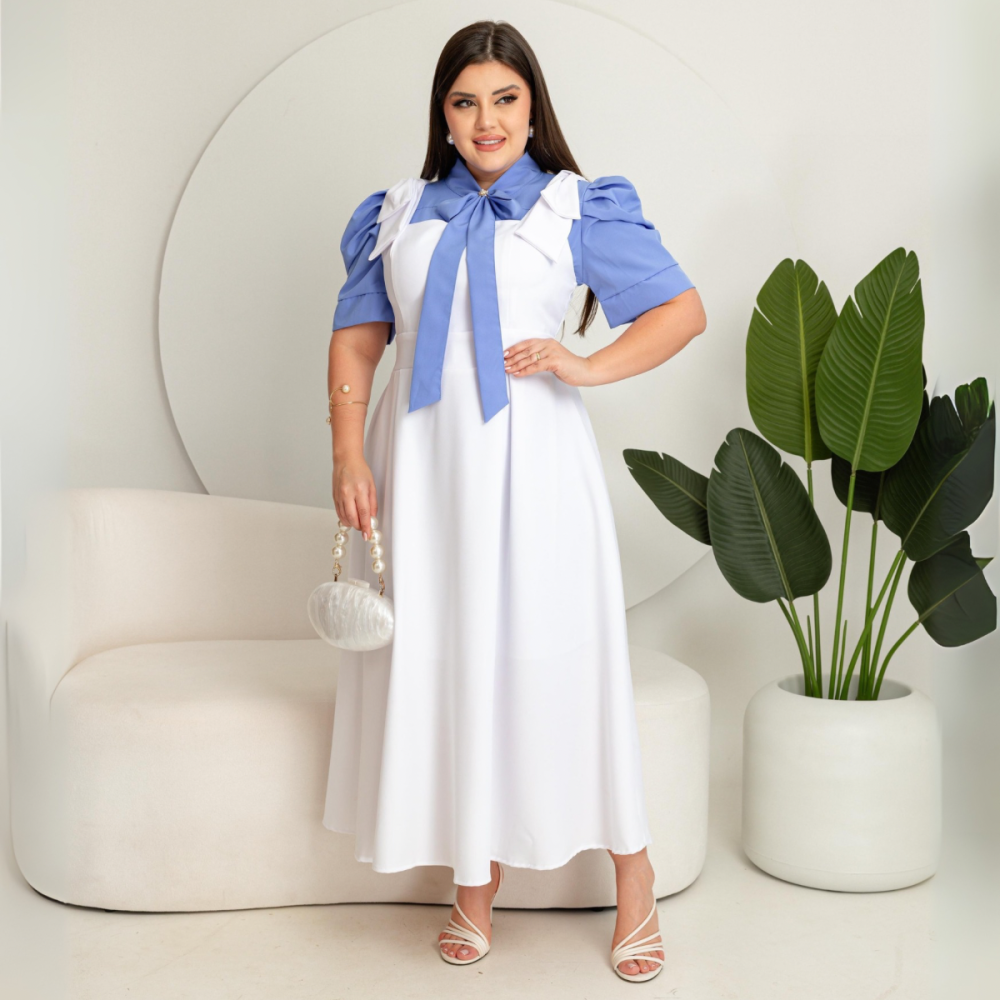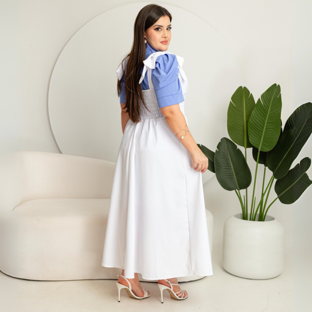 Conjunto Vestido Laço Branco e Blusa Azul Celeste